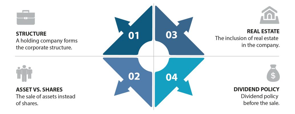 If you know you want to sell your company, as part of the sale preparation, we recommend hiring a tax advisor who is an expert in company sale and purchase transactions. You need to have an appropriate corporate structure according to the operation you want to carry out. There are many corporate factors that you must contemplate when you prepare your business for sale that will affect it fiscally: